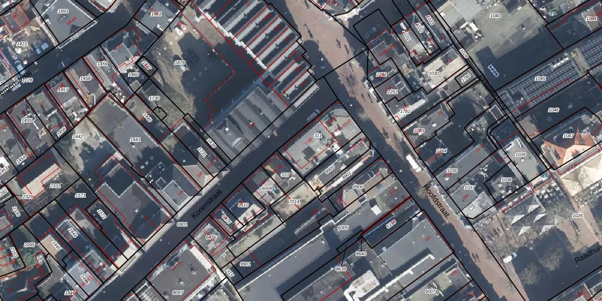 Het perceel waarop Korenstraat 1-A staat heeft een oppervlakte van 338 m². Dit is een groot perceel. De perceeloppervlakte wordt geregistreerd door het Kadaster. Gedetailleerde informatie over de maten van dit perceel kunt u vinden in het rapport Kadastrale kaart met maatvoering van Korenstraat 1-A.