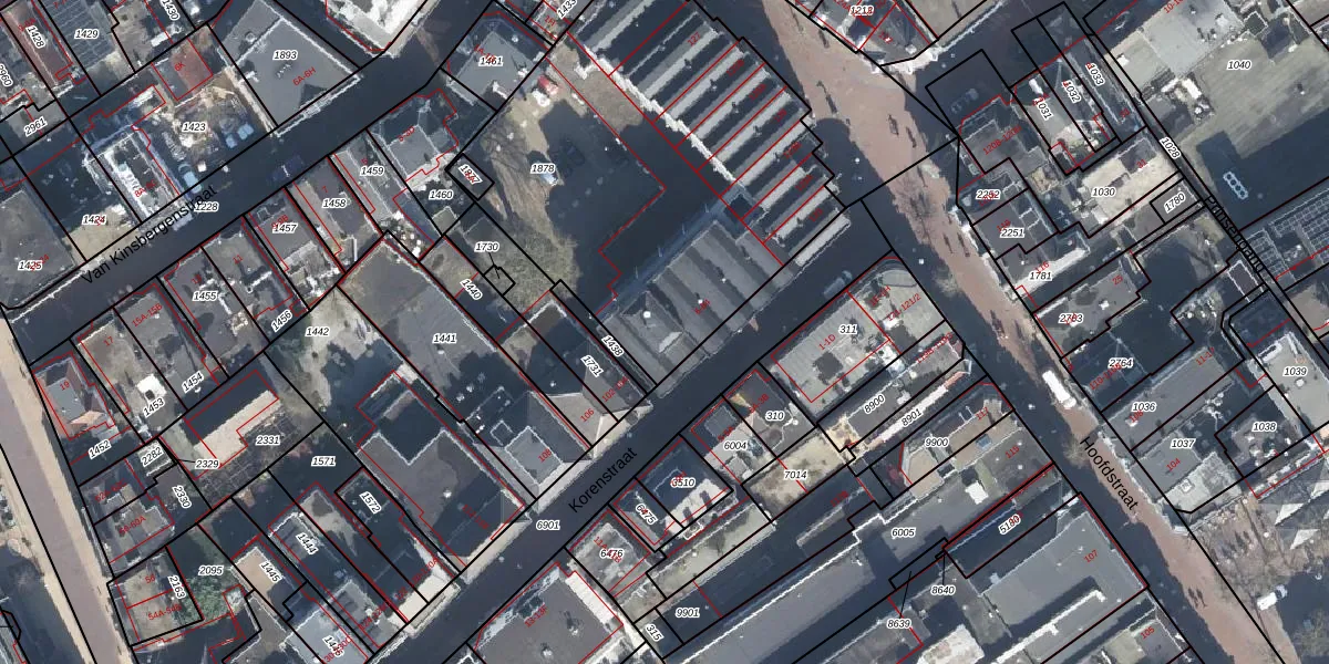 Het perceel waarop Korenstraat 18 staat heeft een oppervlakte van 2056 m². Dit is een zeer groot perceel. De perceeloppervlakte wordt geregistreerd door het Kadaster. Gedetailleerde informatie over de maten van dit perceel kunt u vinden in het rapport Kadastrale kaart met maatvoering van Korenstraat 18.