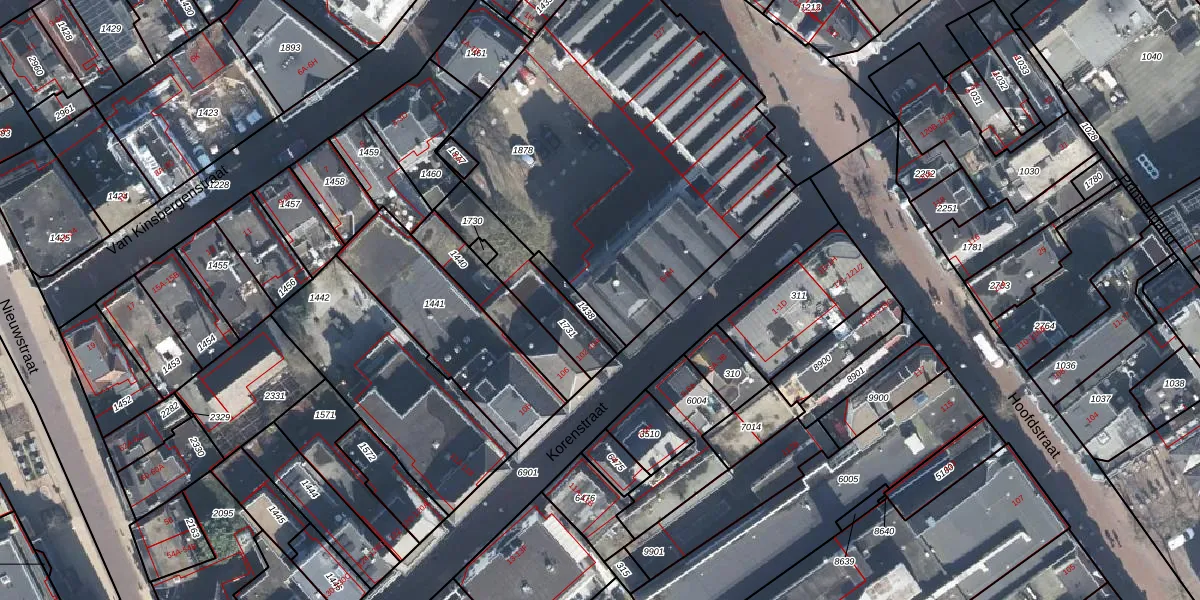 Het perceel waarop Korenstraat 40 staat heeft een oppervlakte van 2056 m². Dit is een zeer groot perceel. De perceeloppervlakte wordt geregistreerd door het Kadaster. Gedetailleerde informatie over de maten van dit perceel kunt u vinden in het rapport Kadastrale kaart met maatvoering van Korenstraat 40.