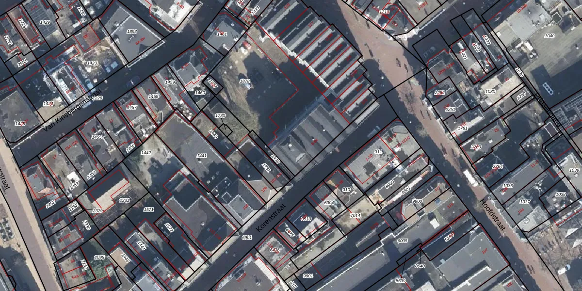 Het perceel waarop Korenstraat 46 staat heeft een oppervlakte van 2056 m². Dit is een zeer groot perceel. De perceeloppervlakte wordt geregistreerd door het Kadaster. Gedetailleerde informatie over de maten van dit perceel kunt u vinden in het rapport Kadastrale kaart met maatvoering van Korenstraat 46.
