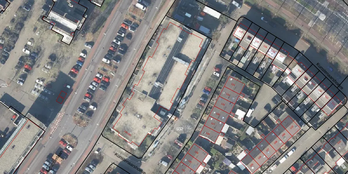 Het perceel waarop Kunstenaarshoeve 252 staat heeft een oppervlakte van 2397 m². Dit is een zeer groot perceel. De perceeloppervlakte wordt geregistreerd door het Kadaster. Gedetailleerde informatie over de maten van dit perceel kunt u vinden in het rapport Kadastrale kaart met maatvoering van Kunstenaarshoeve 252.