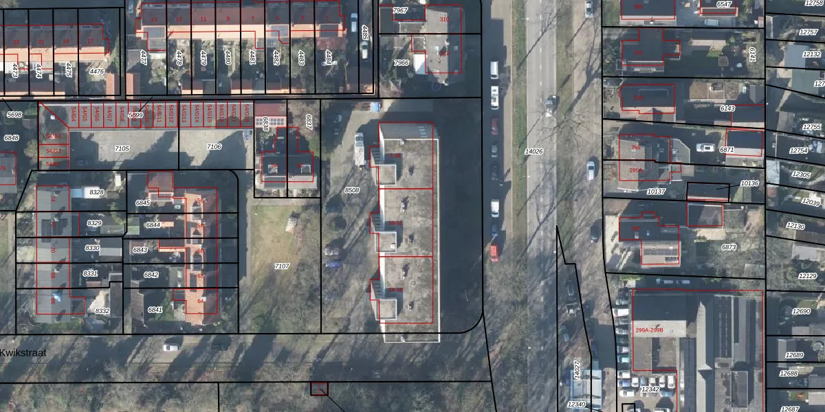Het perceel waarop Kwikstraat 28 staat heeft een oppervlakte van 2233 m². Dit is een zeer groot perceel. De perceeloppervlakte wordt geregistreerd door het Kadaster. Gedetailleerde informatie over de maten van dit perceel kunt u vinden in het rapport Kadastrale kaart met maatvoering van Kwikstraat 28.