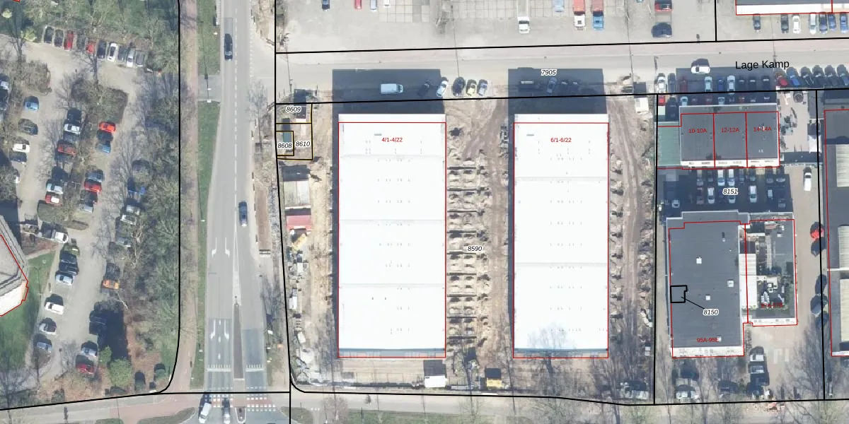 Het perceel waarop Lage Kamp 4-7 staat heeft een oppervlakte van 6063 m². Dit is een zeer groot perceel. De perceeloppervlakte wordt geregistreerd door het Kadaster. Gedetailleerde informatie over de maten van dit perceel kunt u vinden in het rapport Kadastrale kaart met maatvoering van Lage Kamp 4-7.