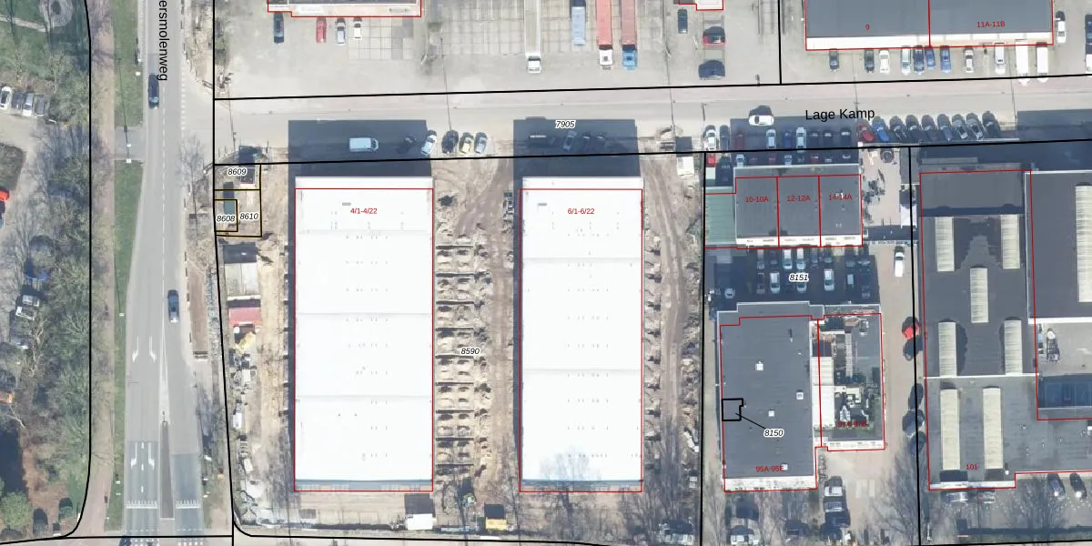 Het perceel waarop Lage Kamp 6-21 staat heeft een oppervlakte van 6063 m². Dit is een zeer groot perceel. De perceeloppervlakte wordt geregistreerd door het Kadaster. Gedetailleerde informatie over de maten van dit perceel kunt u vinden in het rapport Kadastrale kaart met maatvoering van Lage Kamp 6-21.