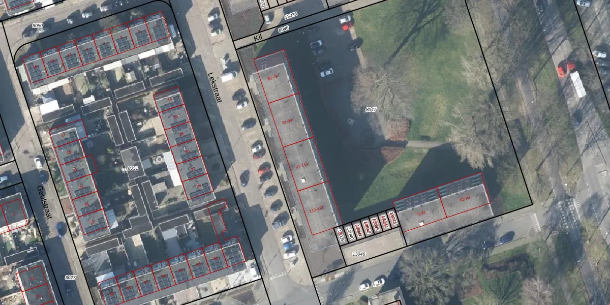 Lekstraat 107 is gelegen op kadastraal perceel APD01L8047. Deze kadastrale aanduiding is uniek en wordt gebruikt door het Kadaster om eigendomsrechten en andere zakelijke rechten vast te leggen. Het perceel maakt onderdeel uit van de kadastrale gemeente Apeldoorn.