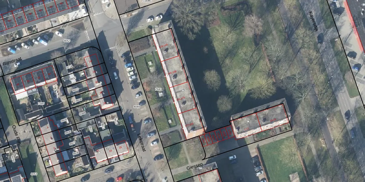 Lekstraat 171 is gelegen op kadastraal perceel APD01L7643. Deze kadastrale aanduiding is uniek en wordt gebruikt door het Kadaster om eigendomsrechten en andere zakelijke rechten vast te leggen. Het perceel maakt onderdeel uit van de kadastrale gemeente Apeldoorn.