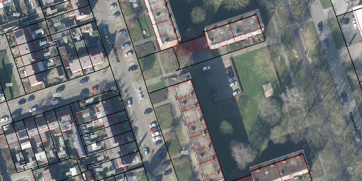 Lekstraat 199 is gelegen op kadastraal perceel APD01L7644. Deze kadastrale aanduiding is uniek en wordt gebruikt door het Kadaster om eigendomsrechten en andere zakelijke rechten vast te leggen. Het perceel maakt onderdeel uit van de kadastrale gemeente Apeldoorn.