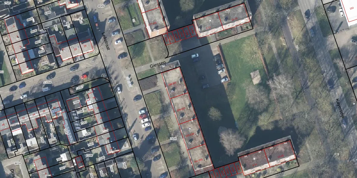 Lekstraat 201 is gelegen op kadastraal perceel APD01L7644. Deze kadastrale aanduiding is uniek en wordt gebruikt door het Kadaster om eigendomsrechten en andere zakelijke rechten vast te leggen. Het perceel maakt onderdeel uit van de kadastrale gemeente Apeldoorn.