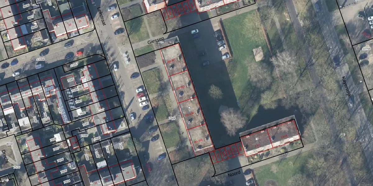 Lekstraat 217 is gelegen op kadastraal perceel APD01L7644. Deze kadastrale aanduiding is uniek en wordt gebruikt door het Kadaster om eigendomsrechten en andere zakelijke rechten vast te leggen. Het perceel maakt onderdeel uit van de kadastrale gemeente Apeldoorn.