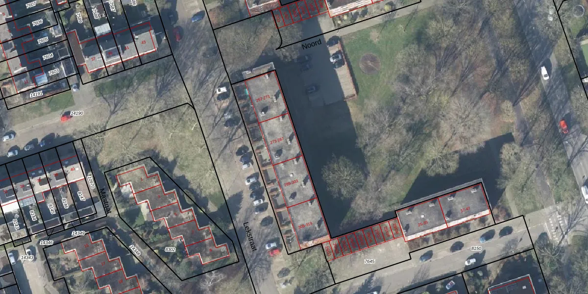 Lekstraat 285 is gelegen op kadastraal perceel APD01L7645. Deze kadastrale aanduiding is uniek en wordt gebruikt door het Kadaster om eigendomsrechten en andere zakelijke rechten vast te leggen. Het perceel maakt onderdeel uit van de kadastrale gemeente Apeldoorn.