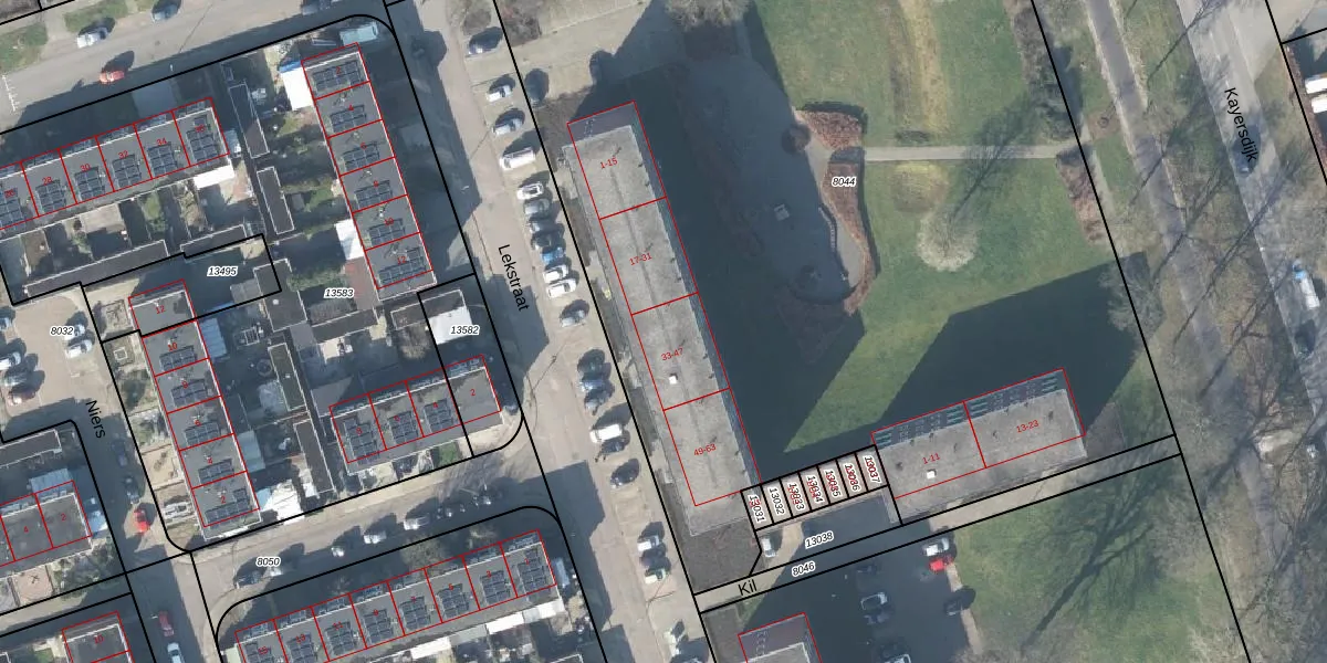 Lekstraat 39 is gelegen op kadastraal perceel APD01L8044. Deze kadastrale aanduiding is uniek en wordt gebruikt door het Kadaster om eigendomsrechten en andere zakelijke rechten vast te leggen. Het perceel maakt onderdeel uit van de kadastrale gemeente Apeldoorn.
