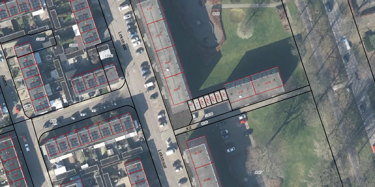 Het perceel waarop Lekstraat 61 staat heeft een oppervlakte van 7350 m². Dit is een zeer groot perceel. De perceeloppervlakte wordt geregistreerd door het Kadaster. Gedetailleerde informatie over de maten van dit perceel kunt u vinden in het rapport Kadastrale kaart met maatvoering van Lekstraat 61.