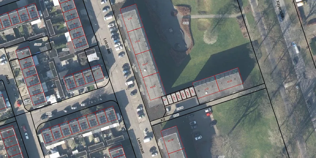 Het perceel waarop Lekstraat 63 staat heeft een oppervlakte van 7350 m². Dit is een zeer groot perceel. De perceeloppervlakte wordt geregistreerd door het Kadaster. Gedetailleerde informatie over de maten van dit perceel kunt u vinden in het rapport Kadastrale kaart met maatvoering van Lekstraat 63.
