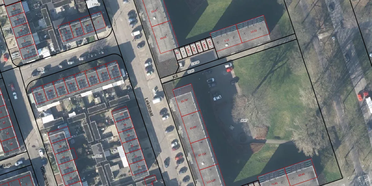 Lekstraat 75 is gelegen op kadastraal perceel APD01L8047. Deze kadastrale aanduiding is uniek en wordt gebruikt door het Kadaster om eigendomsrechten en andere zakelijke rechten vast te leggen. Het perceel maakt onderdeel uit van de kadastrale gemeente Apeldoorn.