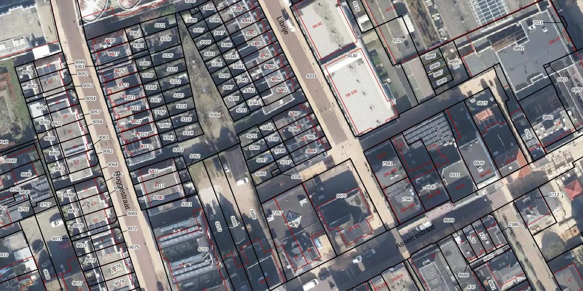 Gebruik de zoekbalk of klik op een perceel voor informatie over de adressen binnen dit perceel.
