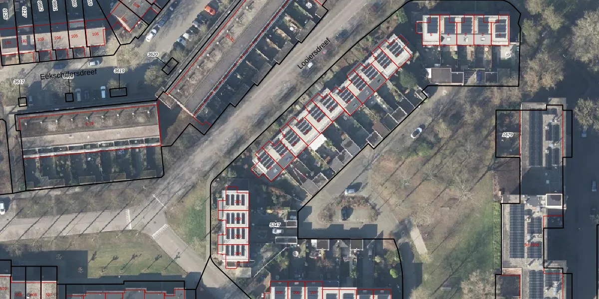 Het perceel waarop Looiersdreef 14 staat heeft een oppervlakte van 5050 m². Dit is een zeer groot perceel. De perceeloppervlakte wordt geregistreerd door het Kadaster. Gedetailleerde informatie over de maten van dit perceel kunt u vinden in het rapport Kadastrale kaart met maatvoering van Looiersdreef 14.