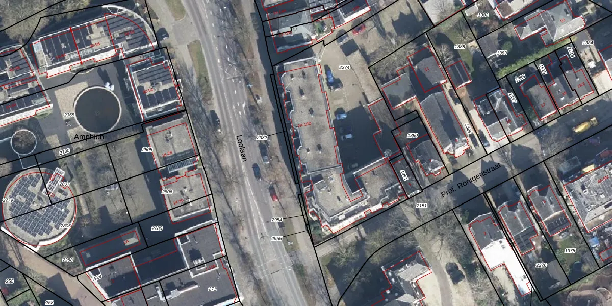 Het perceel waarop Loolaan 2-F staat heeft een oppervlakte van 2283 m². Dit is een zeer groot perceel. De perceeloppervlakte wordt geregistreerd door het Kadaster. Gedetailleerde informatie over de maten van dit perceel kunt u vinden in het rapport Kadastrale kaart met maatvoering van Loolaan 2-F.