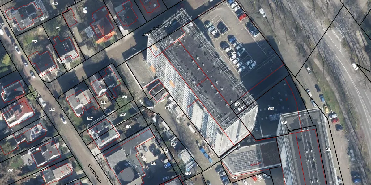 Het perceel waarop Loolaan 41-61 staat heeft een oppervlakte van 3730 m². Dit is een zeer groot perceel. De perceeloppervlakte wordt geregistreerd door het Kadaster. Gedetailleerde informatie over de maten van dit perceel kunt u vinden in het rapport Kadastrale kaart met maatvoering van Loolaan 41-61.