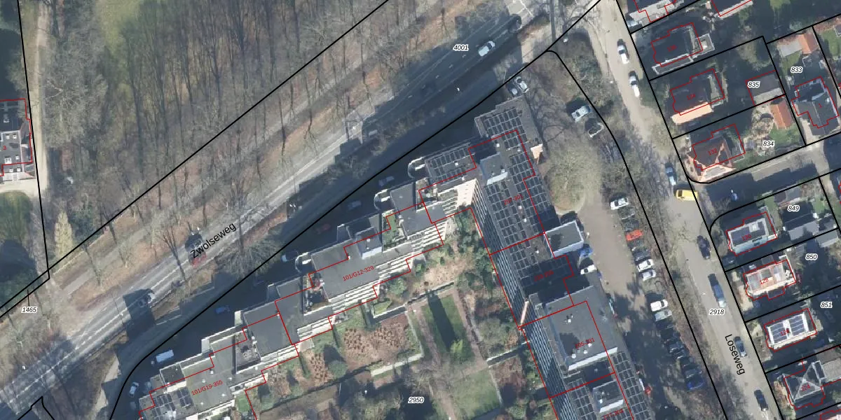 Loseweg 101-G12 is gelegen op kadastraal perceel APD01AB2950. Deze kadastrale aanduiding is uniek en wordt gebruikt door het Kadaster om eigendomsrechten en andere zakelijke rechten vast te leggen. Het perceel maakt onderdeel uit van de kadastrale gemeente Apeldoorn.