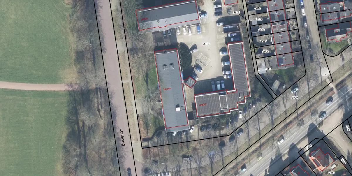 Het perceel waarop Loseweg 140-D-4 staat heeft een oppervlakte van 6033 m². Dit is een zeer groot perceel. De perceeloppervlakte wordt geregistreerd door het Kadaster. Gedetailleerde informatie over de maten van dit perceel kunt u vinden in het rapport Kadastrale kaart met maatvoering van Loseweg 140-D-4.
