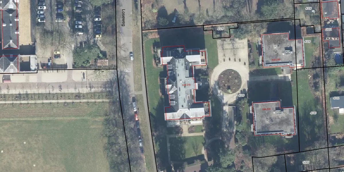 Het perceel waarop Loseweg 246 staat heeft een oppervlakte van 7673 m². Dit is een zeer groot perceel. De perceeloppervlakte wordt geregistreerd door het Kadaster. Gedetailleerde informatie over de maten van dit perceel kunt u vinden in het rapport Kadastrale kaart met maatvoering van Loseweg 246.