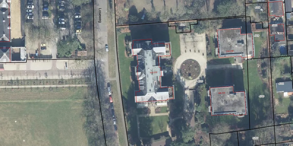 Het perceel waarop Loseweg 256 staat heeft een oppervlakte van 7673 m². Dit is een zeer groot perceel. De perceeloppervlakte wordt geregistreerd door het Kadaster. Gedetailleerde informatie over de maten van dit perceel kunt u vinden in het rapport Kadastrale kaart met maatvoering van Loseweg 256.