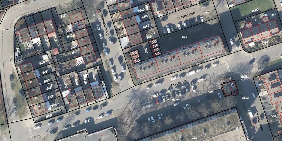 Het perceel waarop Maasstraat 23 staat heeft een oppervlakte van 1677 m². Dit is een zeer groot perceel. De perceeloppervlakte wordt geregistreerd door het Kadaster. Gedetailleerde informatie over de maten van dit perceel kunt u vinden in het rapport Kadastrale kaart met maatvoering van Maasstraat 23.