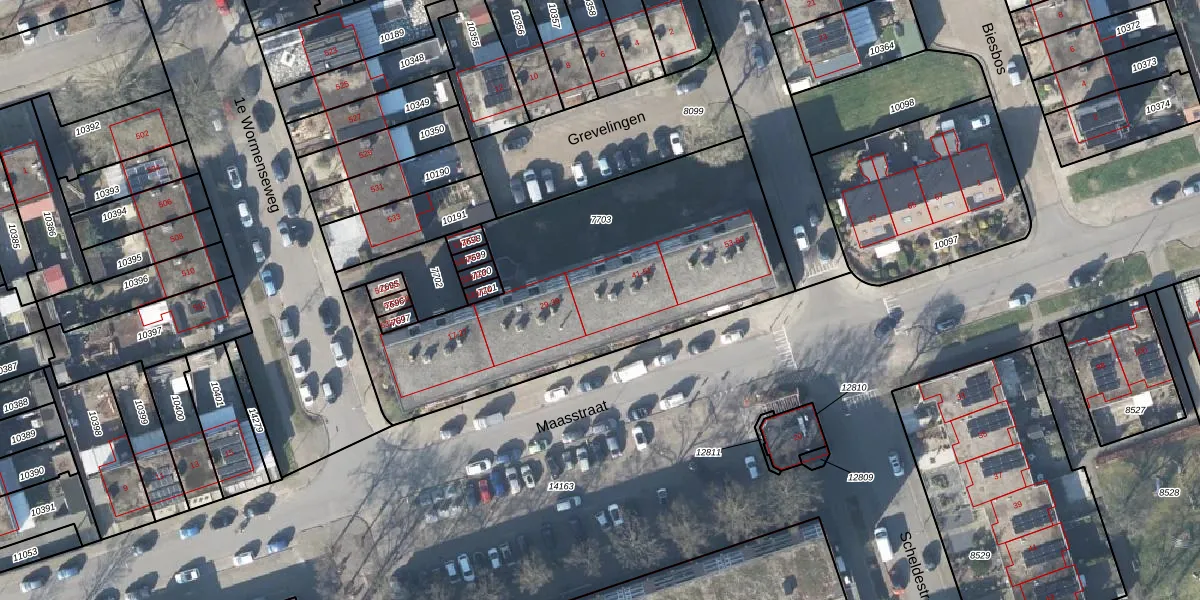 Maasstraat 47 is gelegen op kadastraal perceel APD01L7703. Deze kadastrale aanduiding is uniek en wordt gebruikt door het Kadaster om eigendomsrechten en andere zakelijke rechten vast te leggen. Het perceel maakt onderdeel uit van de kadastrale gemeente Apeldoorn.
