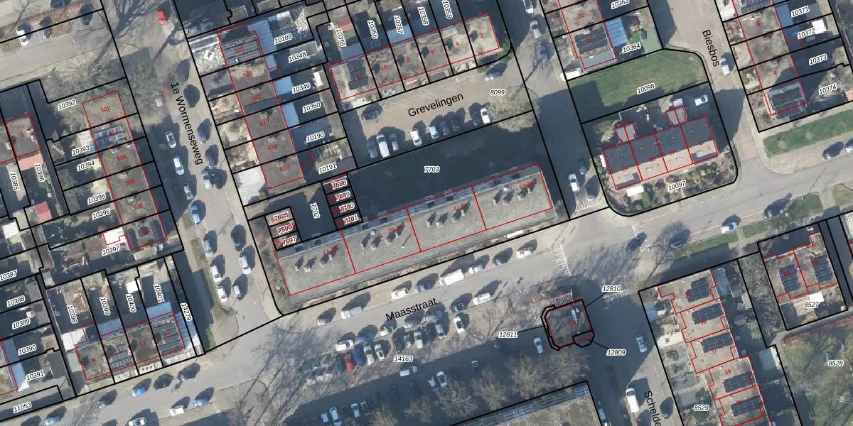 Maasstraat 51 is gelegen op kadastraal perceel APD01L7703. Deze kadastrale aanduiding is uniek en wordt gebruikt door het Kadaster om eigendomsrechten en andere zakelijke rechten vast te leggen. Het perceel maakt onderdeel uit van de kadastrale gemeente Apeldoorn.