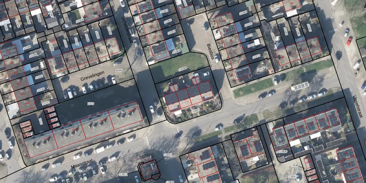 Het perceel waarop Maasstraat 65 staat heeft een oppervlakte van 756 m². Dit is een groot perceel. De perceeloppervlakte wordt geregistreerd door het Kadaster. Gedetailleerde informatie over de maten van dit perceel kunt u vinden in het rapport Kadastrale kaart met maatvoering van Maasstraat 65.