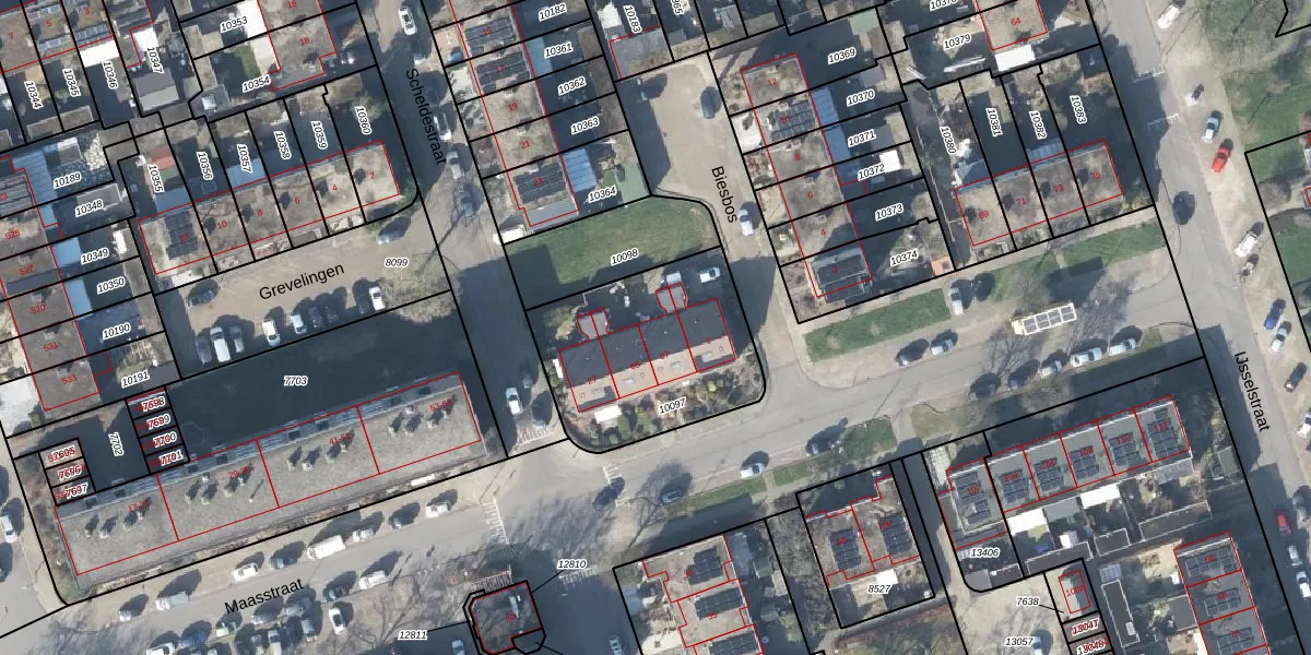 Het perceel waarop Maasstraat 67 staat heeft een oppervlakte van 756 m². Dit is een groot perceel. De perceeloppervlakte wordt geregistreerd door het Kadaster. Gedetailleerde informatie over de maten van dit perceel kunt u vinden in het rapport Kadastrale kaart met maatvoering van Maasstraat 67.