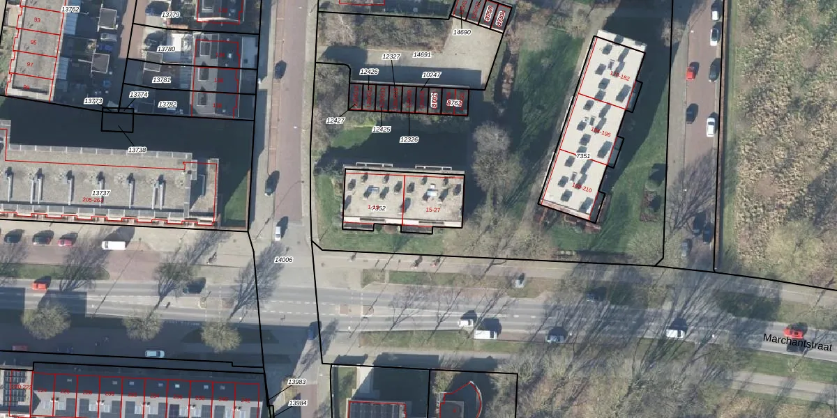 Het perceel waarop Marchantstraat 17 staat heeft een oppervlakte van 391 m². Dit is een groot perceel. De perceeloppervlakte wordt geregistreerd door het Kadaster. Gedetailleerde informatie over de maten van dit perceel kunt u vinden in het rapport Kadastrale kaart met maatvoering van Marchantstraat 17.