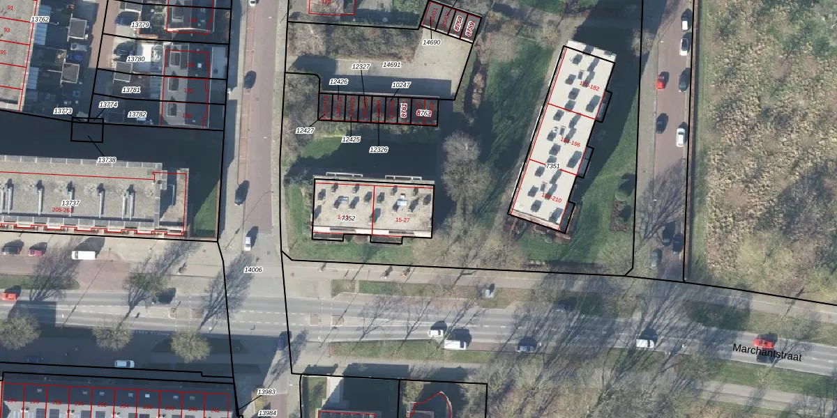 Het perceel waarop Marchantstraat 23 staat heeft een oppervlakte van 391 m². Dit is een groot perceel. De perceeloppervlakte wordt geregistreerd door het Kadaster. Gedetailleerde informatie over de maten van dit perceel kunt u vinden in het rapport Kadastrale kaart met maatvoering van Marchantstraat 23.