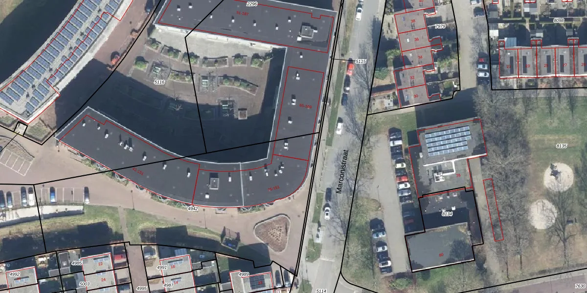 Het perceel waarop Marconistraat 73 staat heeft een oppervlakte van 2928 m². Dit is een zeer groot perceel. De perceeloppervlakte wordt geregistreerd door het Kadaster. Gedetailleerde informatie over de maten van dit perceel kunt u vinden in het rapport Kadastrale kaart met maatvoering van Marconistraat 73.