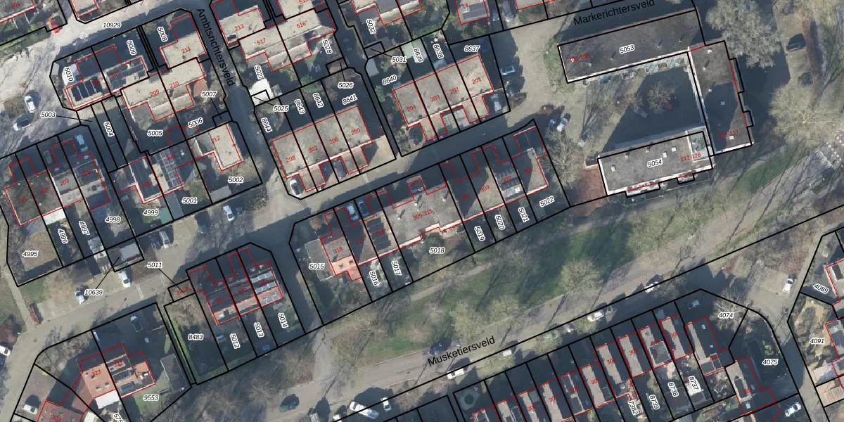 Het perceel waarop Markerichtersveld 307 staat heeft een oppervlakte van 378 m². Dit is een groot perceel. De perceeloppervlakte wordt geregistreerd door het Kadaster. Gedetailleerde informatie over de maten van dit perceel kunt u vinden in het rapport Kadastrale kaart met maatvoering van Markerichtersveld 307.