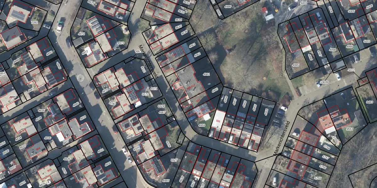 Het perceel waarop Markerichtersveld 508 staat heeft een oppervlakte van 408 m². Dit is een groot perceel. De perceeloppervlakte wordt geregistreerd door het Kadaster. Gedetailleerde informatie over de maten van dit perceel kunt u vinden in het rapport Kadastrale kaart met maatvoering van Markerichtersveld 508.