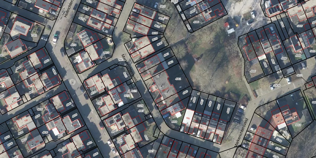 Het perceel waarop Markerichtersveld 509-B staat heeft een oppervlakte van 408 m². Dit is een groot perceel. De perceeloppervlakte wordt geregistreerd door het Kadaster. Gedetailleerde informatie over de maten van dit perceel kunt u vinden in het rapport Kadastrale kaart met maatvoering van Markerichtersveld 509-B.