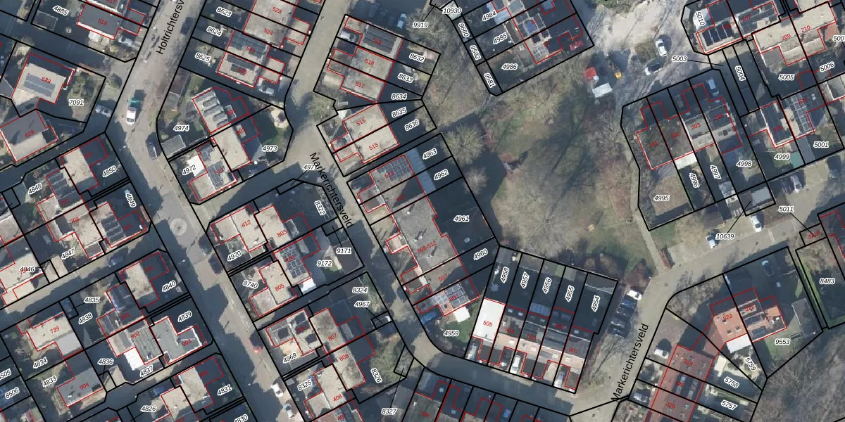 Het perceel waarop Markerichtersveld 511-B staat heeft een oppervlakte van 408 m². Dit is een groot perceel. De perceeloppervlakte wordt geregistreerd door het Kadaster. Gedetailleerde informatie over de maten van dit perceel kunt u vinden in het rapport Kadastrale kaart met maatvoering van Markerichtersveld 511-B.