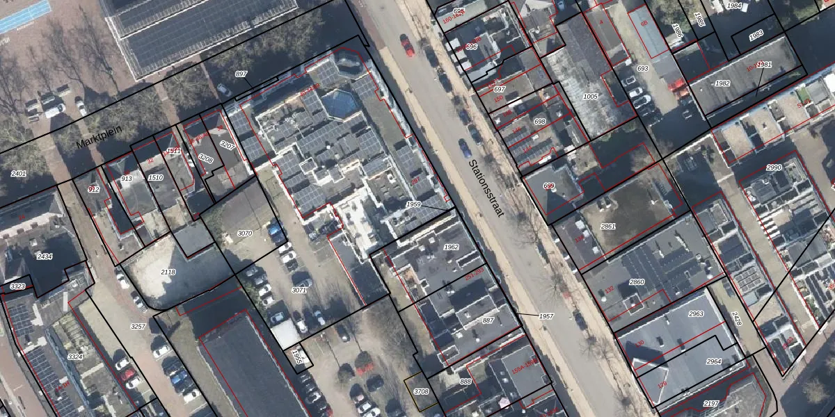 Het perceel waarop Marktplein 44-7 staat heeft een oppervlakte van 2295 m². Dit is een zeer groot perceel. De perceeloppervlakte wordt geregistreerd door het Kadaster. Gedetailleerde informatie over de maten van dit perceel kunt u vinden in het rapport Kadastrale kaart met maatvoering van Marktplein 44-7.