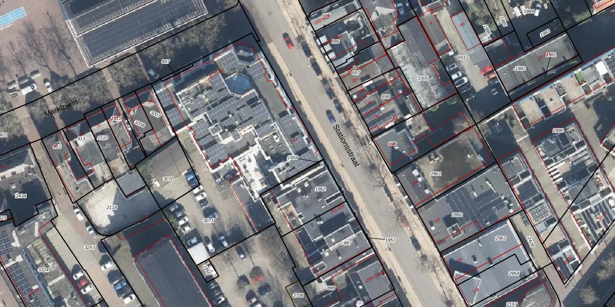 Het perceel waarop Marktplein 44-8 staat heeft een oppervlakte van 2295 m². Dit is een zeer groot perceel. De perceeloppervlakte wordt geregistreerd door het Kadaster. Gedetailleerde informatie over de maten van dit perceel kunt u vinden in het rapport Kadastrale kaart met maatvoering van Marktplein 44-8.