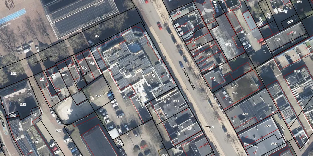 Het perceel waarop Marktplein 44-9 staat heeft een oppervlakte van 2295 m². Dit is een zeer groot perceel. De perceeloppervlakte wordt geregistreerd door het Kadaster. Gedetailleerde informatie over de maten van dit perceel kunt u vinden in het rapport Kadastrale kaart met maatvoering van Marktplein 44-9.