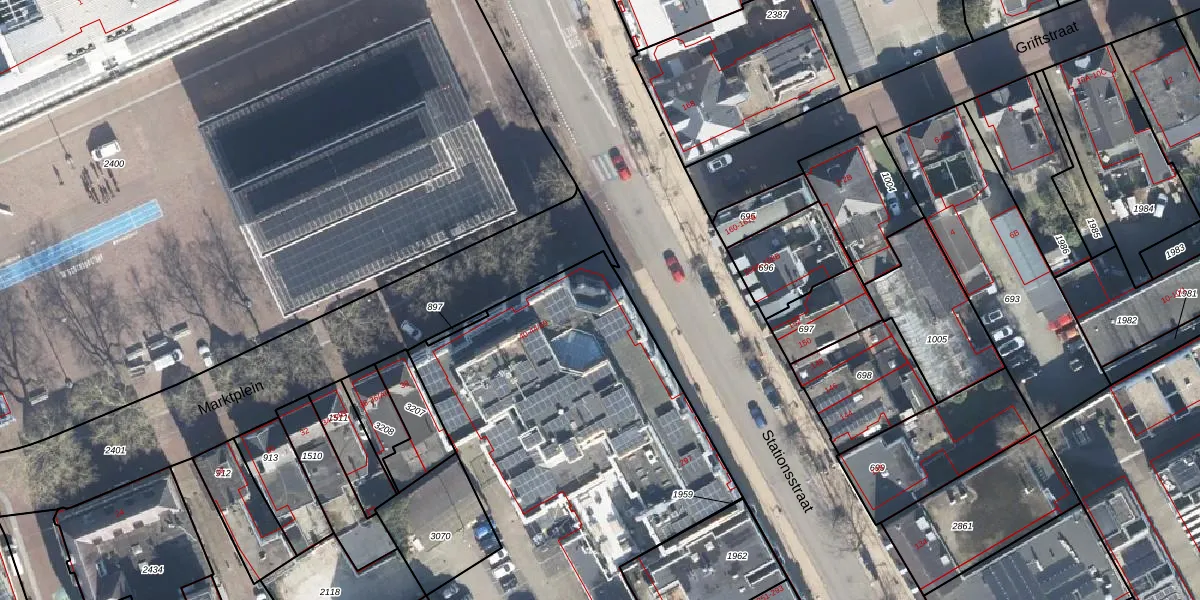 Het perceel waarop Marktplein 44-16 staat heeft een oppervlakte van 2295 m². Dit is een zeer groot perceel. De perceeloppervlakte wordt geregistreerd door het Kadaster. Gedetailleerde informatie over de maten van dit perceel kunt u vinden in het rapport Kadastrale kaart met maatvoering van Marktplein 44-16.
