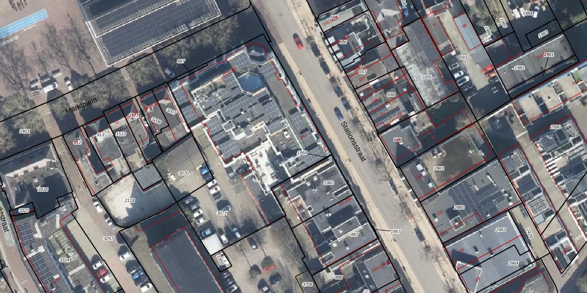 Het perceel waarop Marktplein 44-54 staat heeft een oppervlakte van 2295 m². Dit is een zeer groot perceel. De perceeloppervlakte wordt geregistreerd door het Kadaster. Gedetailleerde informatie over de maten van dit perceel kunt u vinden in het rapport Kadastrale kaart met maatvoering van Marktplein 44-54.