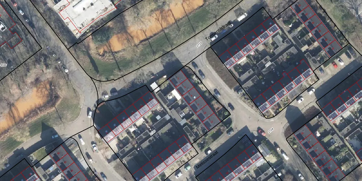 Het perceel waarop Melissestraat 4 staat heeft een oppervlakte van 2810 m². Dit is een zeer groot perceel. De perceeloppervlakte wordt geregistreerd door het Kadaster. Gedetailleerde informatie over de maten van dit perceel kunt u vinden in het rapport Kadastrale kaart met maatvoering van Melissestraat 4.
