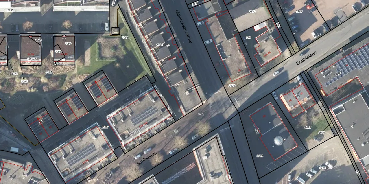 Het perceel waarop Molendwarsstraat 100 staat heeft een oppervlakte van 1569 m². Dit is een zeer groot perceel. De perceeloppervlakte wordt geregistreerd door het Kadaster. Gedetailleerde informatie over de maten van dit perceel kunt u vinden in het rapport Kadastrale kaart met maatvoering van Molendwarsstraat 100.