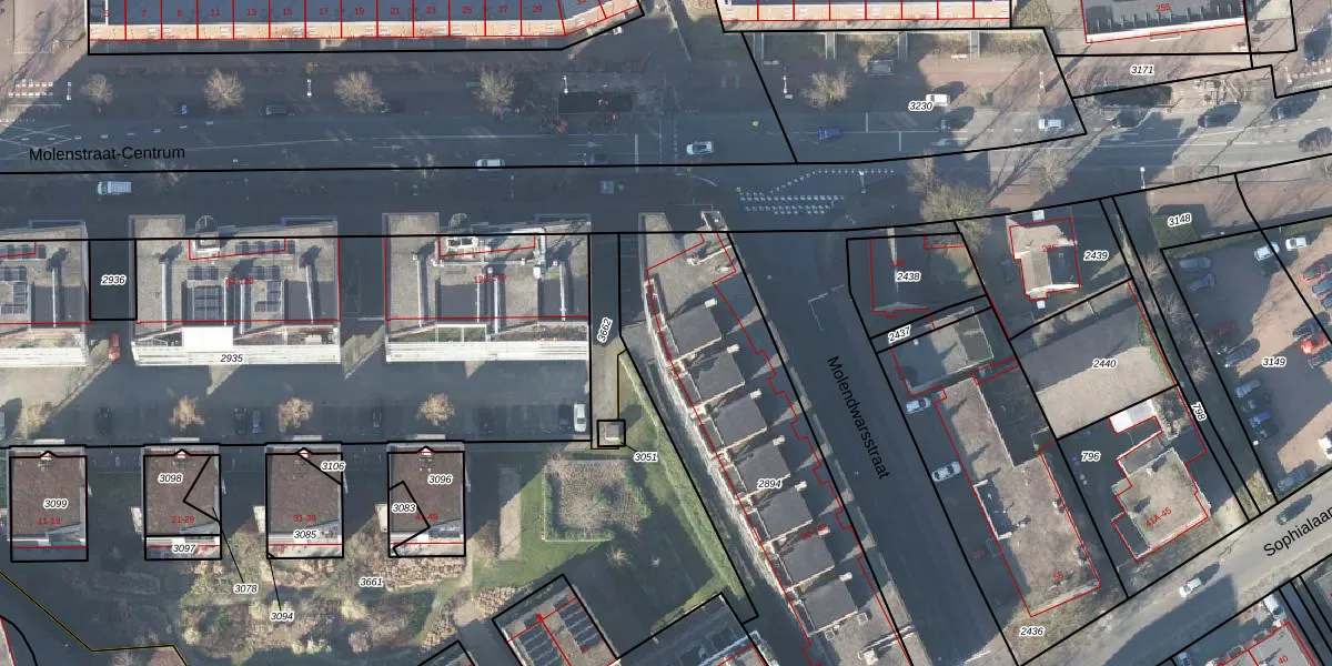 Het perceel waarop Molendwarsstraat 124 staat heeft een oppervlakte van 1569 m². Dit is een zeer groot perceel. De perceeloppervlakte wordt geregistreerd door het Kadaster. Gedetailleerde informatie over de maten van dit perceel kunt u vinden in het rapport Kadastrale kaart met maatvoering van Molendwarsstraat 124.