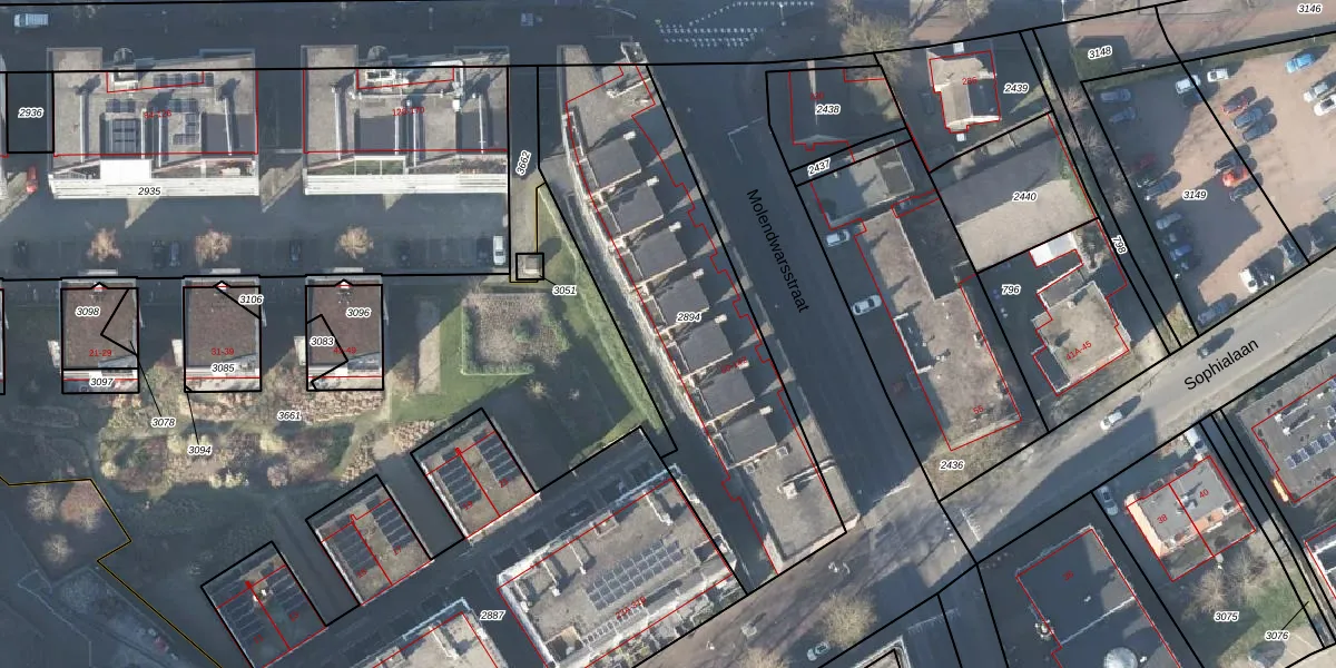 Het perceel waarop Molendwarsstraat 132 staat heeft een oppervlakte van 1569 m². Dit is een zeer groot perceel. De perceeloppervlakte wordt geregistreerd door het Kadaster. Gedetailleerde informatie over de maten van dit perceel kunt u vinden in het rapport Kadastrale kaart met maatvoering van Molendwarsstraat 132.