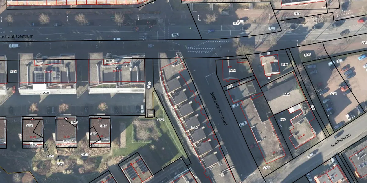 Het perceel waarop Molendwarsstraat 66 staat heeft een oppervlakte van 1569 m². Dit is een zeer groot perceel. De perceeloppervlakte wordt geregistreerd door het Kadaster. Gedetailleerde informatie over de maten van dit perceel kunt u vinden in het rapport Kadastrale kaart met maatvoering van Molendwarsstraat 66.