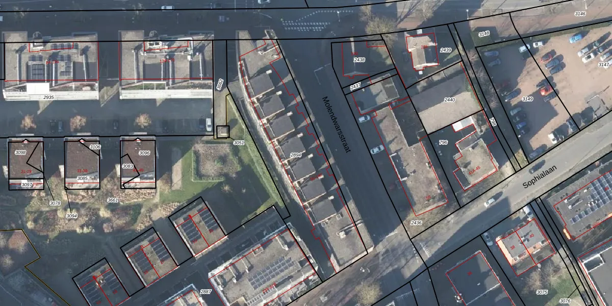 Het perceel waarop Molendwarsstraat 72 staat heeft een oppervlakte van 1569 m². Dit is een zeer groot perceel. De perceeloppervlakte wordt geregistreerd door het Kadaster. Gedetailleerde informatie over de maten van dit perceel kunt u vinden in het rapport Kadastrale kaart met maatvoering van Molendwarsstraat 72.