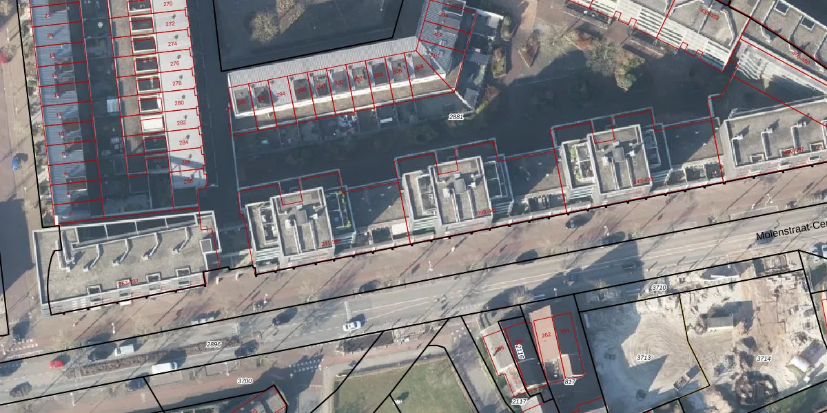 Molenstraat-Centrum 413 is gelegen op kadastraal perceel APD01AA2881. Deze kadastrale aanduiding is uniek en wordt gebruikt door het Kadaster om eigendomsrechten en andere zakelijke rechten vast te leggen. Het perceel maakt onderdeel uit van de kadastrale gemeente Apeldoorn.